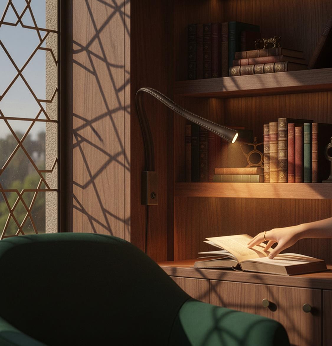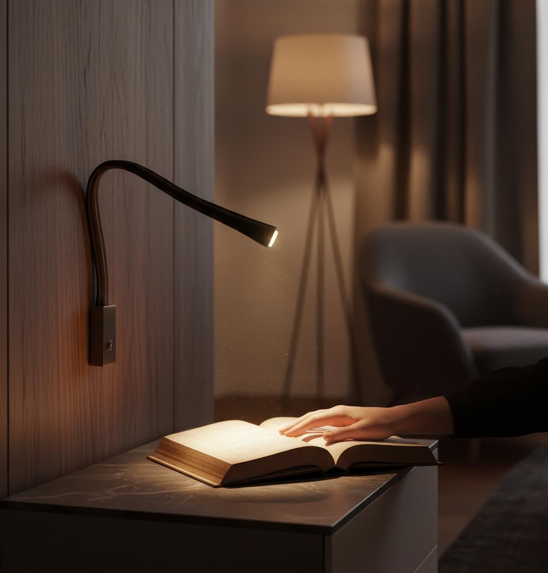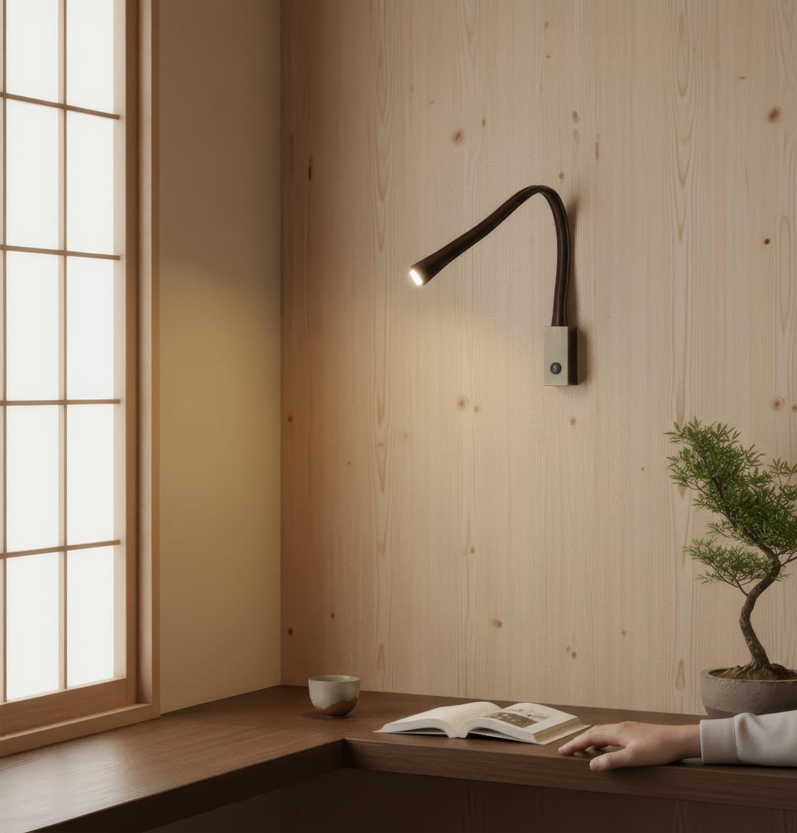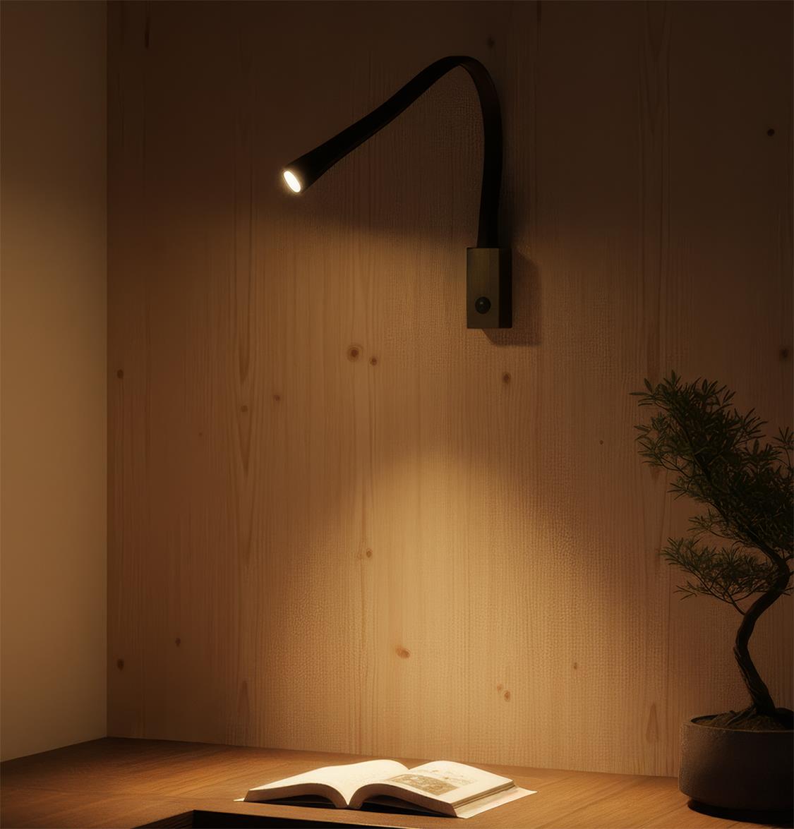 LED ışığın odaklı ve yumuşak aydınlatması, okuma köşelerinden yatak başlarına kadar her alana konforlu bir ışık sağlar. Esnek yapısı sayesinde ışığın yönünü kolayca ayarlamaya imkân tanır; böylece hem işlevsel hem de estetik bir kullanım deneyimi sunar. Tasarımın sadeliği, yüksek kalite hissiyle birleşerek mekâna modern bir dokunuş kazandırır.